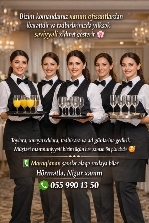 Toylara xına məclislərinə ad günlərinə xanım ofisantlar 21:45