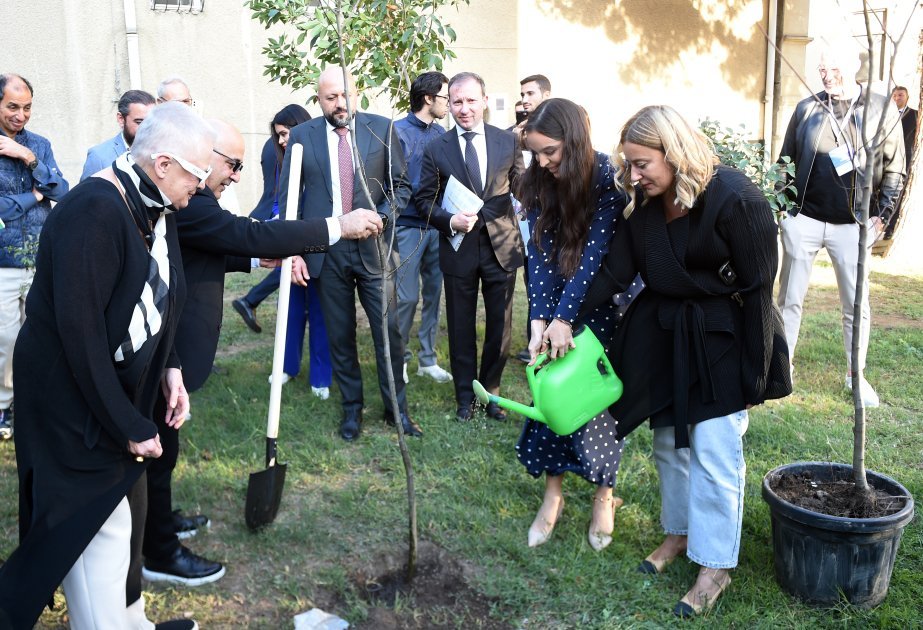 Daha sonra Leyla Əliyevanın iştirakı ilə Mərkəzin terrasında püstə ağacı əkilib.